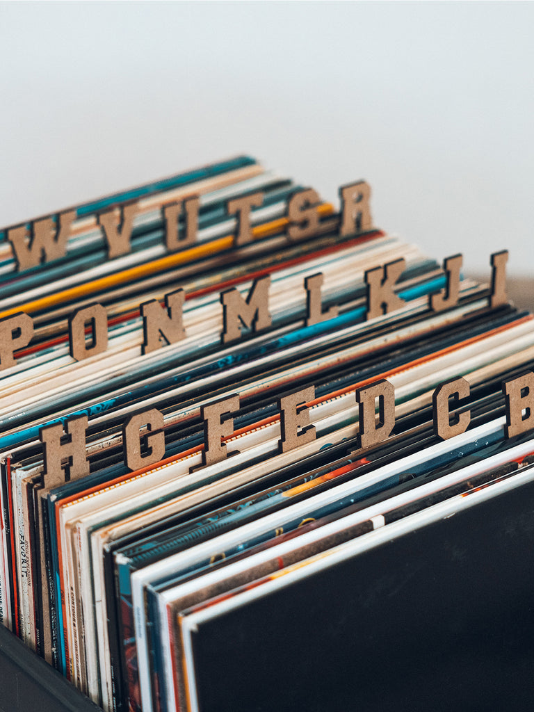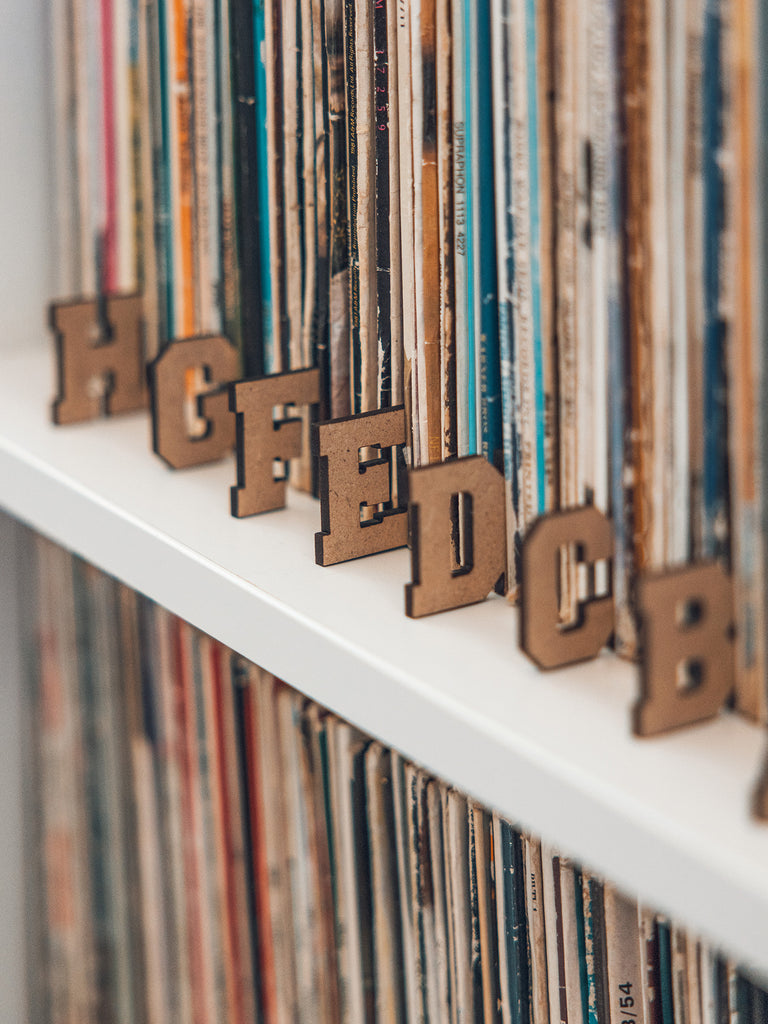 27 laser-cut wooden dividers can be easily placed in-between the individual records. The letters are their great advantage, so you can organize your collection alphabetically, but also in any other order.