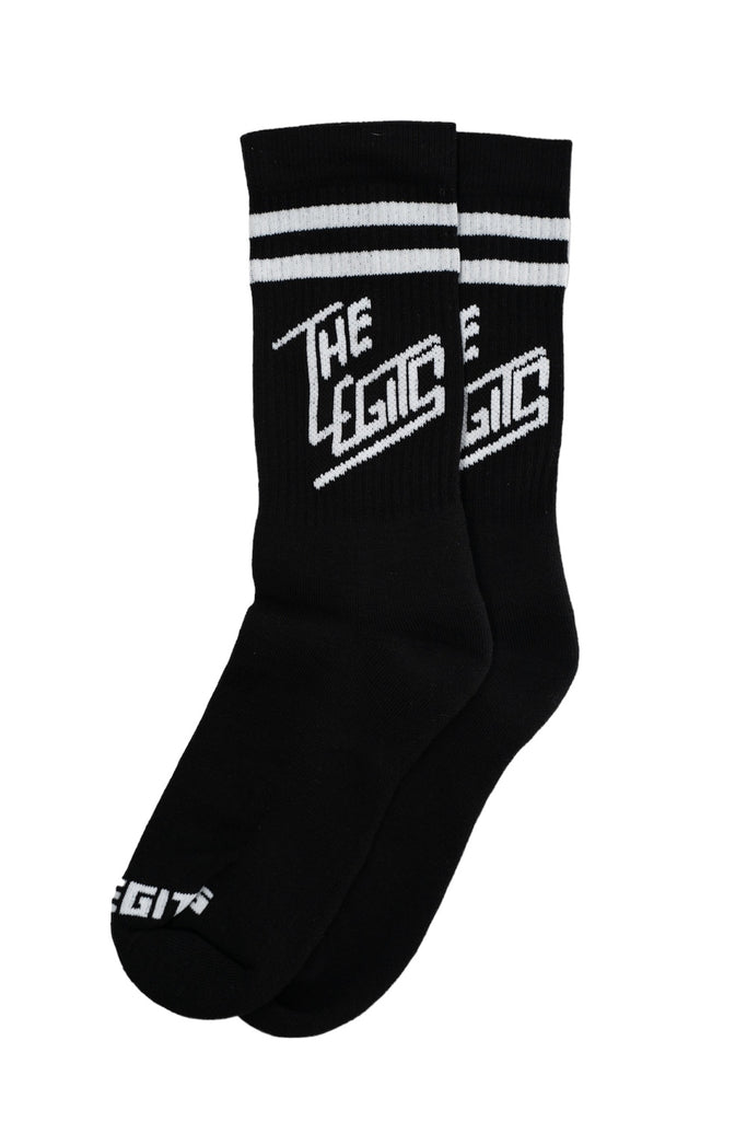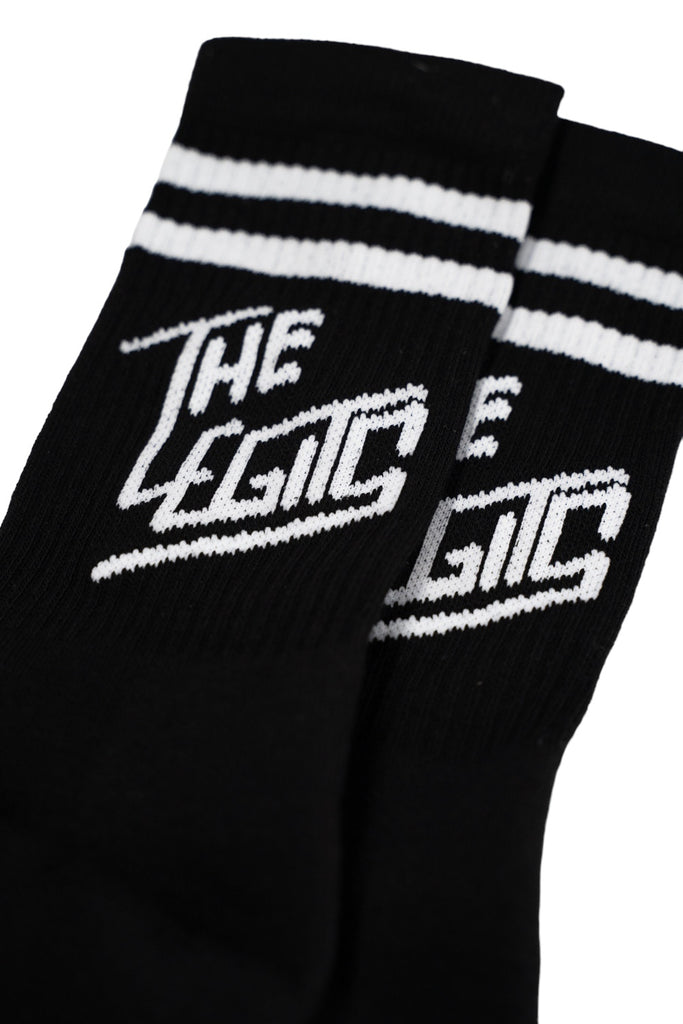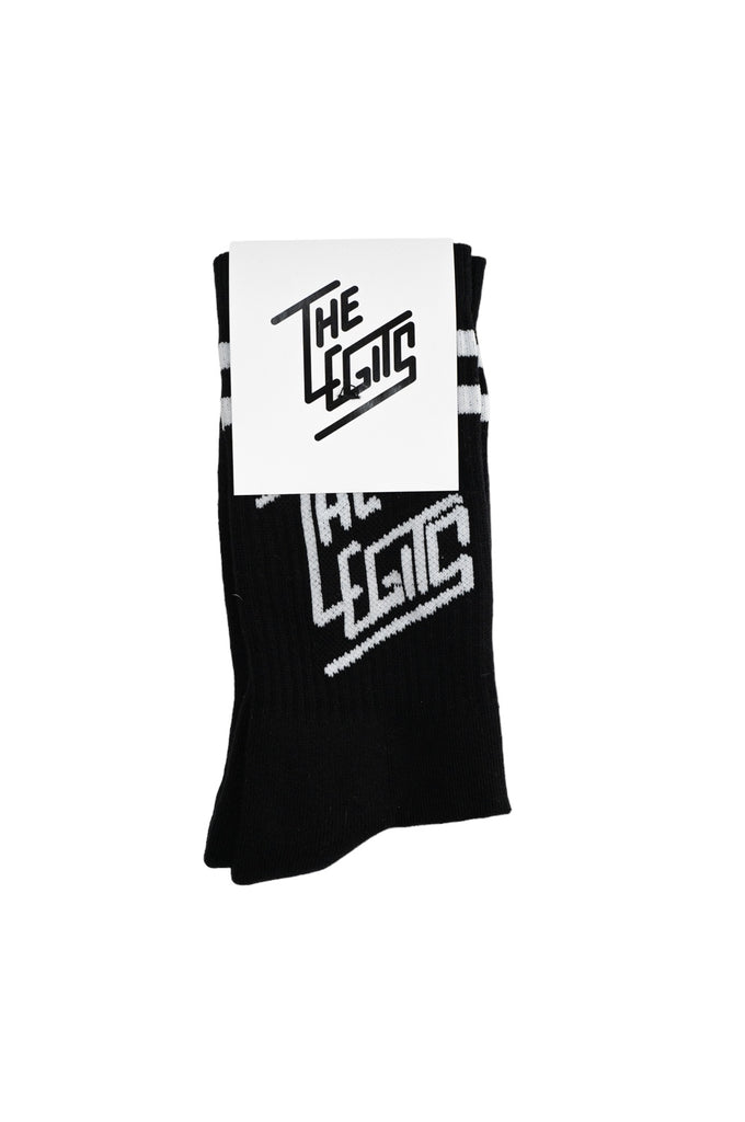 Time to refresh the winter assortment with accessories. The Legits diagonal logo white on black socks can be the right addition to your colorful or black on black outfit.